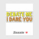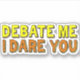 Debate me, I dare you sticker. A confident quote by an opinionated person who can argue their way through any oration discussion or competition. Cool bright yellow and orange text on this orator humour sticker for a speech and debate team. Have the confidence that you will win any argument.