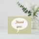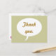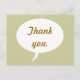 A simple speech bubble on a background of light gold, with Thank you, written in gold, in the middle, is printed on postcards. The text can be easily customised or deleted on the template form.