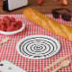 Large black hypnotic circle pattern that is whimsical and decorative.