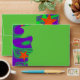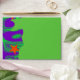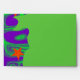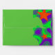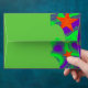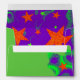 Green envelope with a swirling purple and green pattern scattered with magical, glowing orange and green stars. A purple, green and orange customisable design for you to add your own text, images and ideas. Matches invitations and cards in the 'Spellbound' range. Created using digital techniques by Jess Perry.