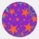 Bewitching sticker with a swirling purple and green background scattered with magical, glowing orange and green stars. A purple, green and orange customisable design for you to add your own text, images and ideas. Created using digital techniques by Jess Perry.