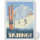 Celebrate the joy of winter adventures with the "Spend the Day Skiing" vintage poster by Anderson Design Group. Featuring skiers gliding down a snowy mountain with bright orange skis in the foreground, this artwork brings retro charm to any ski lodge or winter home.