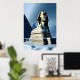 Sphinx in the snow with pyramid in the background. This is a AI generated art.