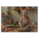 Add a bold and unique touch to your kitchen with this Sphynx cat design featuring a distinctive feline cooking in a cosy setting. With its hairless look, expressive features, and playful personality, this artwork captures the breed’s quirky and loveable charm.