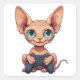 Sphynx Cat Holding Game Controller Square Sticker