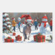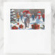 Sphynx Cat Running in Snow with Christmas Hat Rectangular Sticker