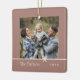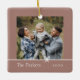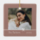 Sweet and simple Christmas photo ornament features a minimalist layout, with your family name and the year in clean, classic serif typeface on a soft earth tone terracotta background. A petite bow beneath your photo completes the design. Add a second photo to the reverse side.