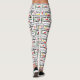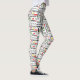 Cool leggings patterned with the names of different chillies. In between the chilli names are illustrations of colourful chilli peppers.