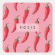 Spicy Red Chilli Pepper Pattern on Pink Background Square Sticker