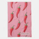 Spicy Red Chilli Pepper Pattern on Pink Background Tea Towel