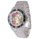 This men's watch has a Bauhaus design of rounded triangles in spice colours of gold, brown, red, beet, seafoam, tan, and off-white.. Like this design but want different colours? Message me.