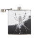 A flask featuring a photo of a spider in a web.