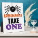 A Halloween candy bowl and/or candy table sign, which says Please take one with a dangling spider. Cute and creepy! Perfect for your Halloween party, Halloween kids party and trick-or-treaters.