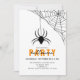 Spider & Web Modern Adult Halloween Party Invitation. The design features a spider and its web on white background with modern typography. Customisable Modern Minimalist Halloween party invitation. Edit it with your information or use design toll to change the font, size, and colour.