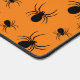 Black and Orange spider Halloween Desk Mat. Cool fun pattern with Spooky Halloween design. Custom orange with big and small scary crawling spiders.