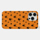 Black and Orange spider Halloween iPhone Case. Cool fun pattern with Spooky Halloween design. Custom orange with big and small scary crawling spiders.