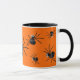 Use this silly bug-eyed spider mug when you go trick or treating on Halloween or any time of year. They won't scare anyone but you are sure to get lots of laughs and goodies. Black spiders with white eyes bugging out of their heads are scattered on an orange background.
