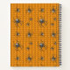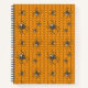 A bright orange background creates a perfectly Halloween-themed base for a repeating pattern of black web crawling with spiders. These spiders, modelled after the false widow, feature a bright white skull on their abdomens and other white markings on their body and legs.