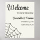 Welcome guests to your wedding in style with this poster that's perfect for gothic style weddings with its spiderweb graphic. Black text is set against an ecru or eggshell white background.
