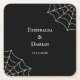 Spiderwebs Black and White Gothic Wedding Square Paper Coaster
