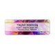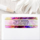 A background which is an abstract design which has a a shiny glass look to it. Lots of sharp shards and spiky pointed edges give it a cool modern look. Many shades of purple and pink blending together give this design an exciting lively feel. A banner with a transparent overlay and a gold border stretches across the centre for easy legible writing of your name and address.