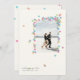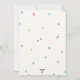Two editable text boxes sit on the bottom left for your own personalized greeting and name. The back of the card continues the celebratory theme with lightly scattered confetti dots.