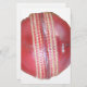 The artwork features a single, red cricket ball in a close-up view against a clean white background. The textured leather surface and the prominent raised seam with its white or cream-coloured stitching are clearly visible, emphasizing the ball's physical characteristics crucial for spin bowling. The slightly worn appearance suggests its active role in the game.