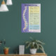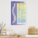 Spinal nerve function chart. The poster list the effects of nerve interference on body areas and possible symptoms associated. Symptoms from interference to the nervous system are listed by spinal level from the cervical vertebrae to the sacrum.