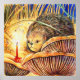 A whimsical poster of a hedgehog reading by candlelight among the mushrooms. Lovely fantasy picture for children who love animals and hedgehogs in particular.