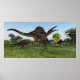 A Spinosaurus mother walks with her youngsters in prehistoric times.