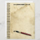 Here's a really fun stationary. The look of an old spiral bound journal. The page looks stained as though it's been around the world with your. An ink pen at the bottom with an ink stain. The text has the look of worn type. This stationary will make it fun to write letters.