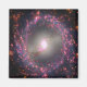 Spiral galaxy NGC 3351. Dense molecular gas is shown in magenta. Young massive stars illuminate their surroundings in red. Dust lanes are highlighted in white and newly formed stars in blue.