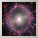 Spiral galaxy NGC 3351. Dense molecular gas is shown in magenta. Young massive stars illuminate their surroundings in red. Dust lanes are highlighted in white and newly formed stars in blue.