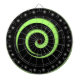Wild looking spiral design covers this regulation dart board along with a starry side border. Black spiral over a dark green