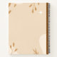 This spiral notebook design features a warm, minimalistic aesthetic. The **cover** showcases a soft beige background with delicate botanical elements, including branches and leaves in muted brown and gold tones. These organic illustrations provide a natural, calming feel. Subtle abstract shapes and white sparkles add a modern touch while maintaining simplicity.
