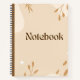 The **spiral binding** on the left is metallic brown, complementing the earthy colour palette. The word "Notebook" is centred on the cover in an elegant serif font, emphasizing sophistication and clarity. This design is ideal for those who appreciate a combination of style and functionality in stationery.