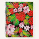 The notebook showcases a striking design of red and pink flowers, intricately painted in the traditional Petrykivka style, set against a deep black background. The floral patterns are rich in detail, with delicate leaves and vibrant petals that seem to bloom right off the cover. The contrast of the bold colours against the dark background gives the notebook an elegant yet lively appearancе.