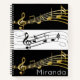 Spiral Notebook Black White Gold Music Notes