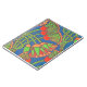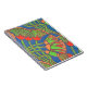 A spiral notebook with a red, green, golden yellow Egyptian pattern on a bright blue background, from a screenprinted design by Judy Adamson. Other products with this design are available in my store.