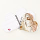 A line art illustration of a woman's face in bronze, gold and streaks of gold in the background colours. Surrounding the face are a couple of hand-drawn lines, wisps and tendrils in a bronzy gold colour. The watercolor background have soft pink, peach as a cover for a heart shaped notebook, a cute gift idea for her .