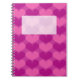 Spiral notebook with cute pink heart pattern and label space. Romantic pattern / print with beautiful pink and purple hearts