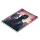 Computer-generated design of a Geisha in a cherry blossom forest. A picture of a woman with a beautiful dome and hair blossoms wearing a kimono. Japanese design in AI style. In the background, two Japanese buildings.