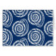Note card in a block print pattern, based on a spiral seashell, in white on a cobalt blue background