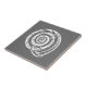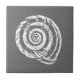 Ceramic tile in a single block of a spiral seashell, in white on a deep graphite grey / grey background