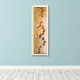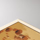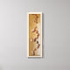 This wrapped canvas offers moody light shining on a motionless segment of simple globe and pitcher shaped terracotta wind chimes that are set in a spiralled effect. This photo is framed by a thin brown line and an ivory border. The image was altered with photo editing software for a rough painted effect.