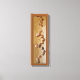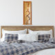 This wrapped canvas offers moody light shining on a motionless segment of simple globe and pitcher shaped terracotta wind chimes that are set in a spiralled effect. This photo is framed by a thin brown line and a terra cotta border. The image was altered with photo editing software for a rough painted effect.