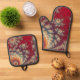 Spiralling Floral Pattern Oven Mitt & Pot Holder Set