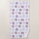 This beach towel has an art deco design of spirals in shades of purple, light blue, and brown, on a field of white. If you want the same design with different colours, message me.