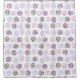 This shower curtain has an art deco design of spirals in shades of purple, light blue, and brown, on a field of white. If you want the same design with different colours, message me.