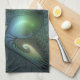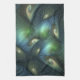Spirals Teal Beige Green Abstract Fractal Art Tea Towel